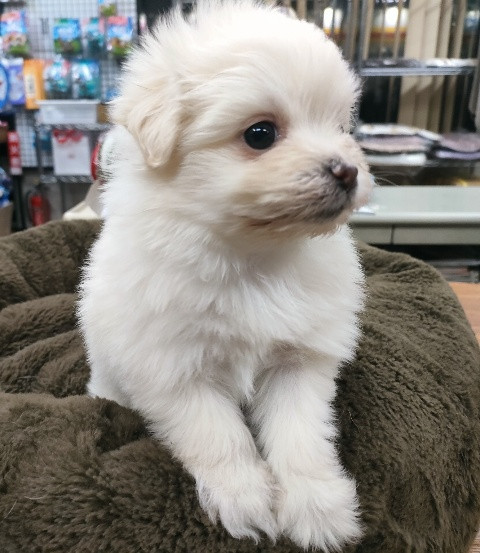 マルチーズとポメラニアンのミックス犬の女の子が新しくやって来ました!